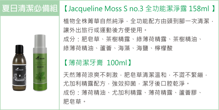 洗劑類部分,用自然農法一點一滴拉拔長大的肥皂草製成,成分天然像水一樣透明純淨,散發淡淡芳草香味。