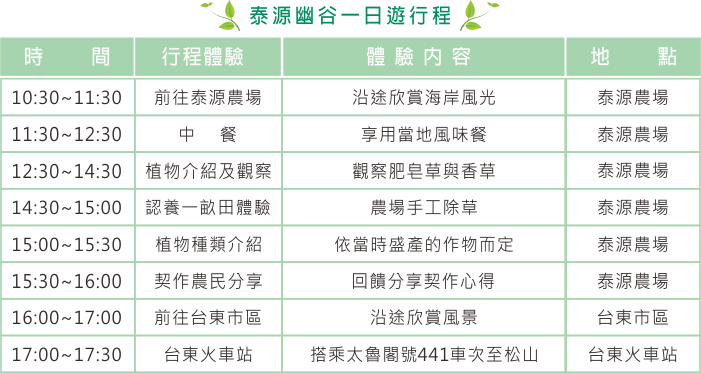 泰源幽谷一日遊行程