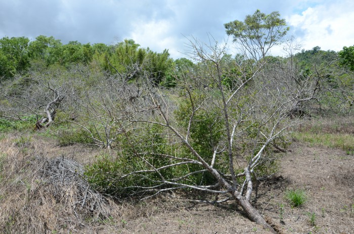 颱風重創東台灣後,留下一片片倒地的枯枝殘幹